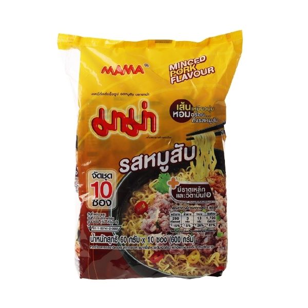 บะหมี่กึ่งสำเร็จรูป รสหมูสับ ( 60g x แพค 10 ซอง )