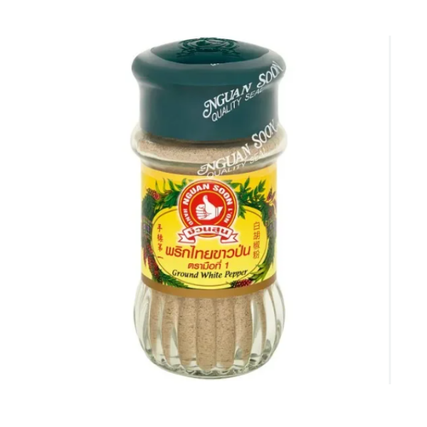 ง่วนสูน พริกไทยขาวป่น เป็นพริกไทยขาวที่ผ่านกระบวนการป่นอย่างละเอียด เพื่อให้สะดวกในการใช้ปรุงอาหาร ช่วยเพิ่มความเผ็ดร้อนและกลิ่นหอมให้กับอาหารหลายชนิด เช่น สเต็ก, ซุป, หรือแม้กระทั่งในเครื่องดื่มร้อนต่างๆ พริกไทยขาวของง่วนสูนมาจากแหล่งผลิตที่มีคุณภาพ ช่วยเพิ่มรสชาติอร่อยให้กับทุกเมนูของคุณ