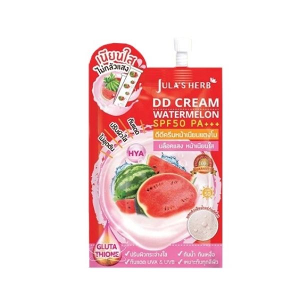 ปกป้องผิวจากแสงแดดและเพิ่มความกระจ่างใสอย่างเป็นธรรมชาติด้วยดีดีครีมกันแดดแตงโม จุฬาเฮิร์บ ขนาด 8 ml แบบซอง พกพาสะดวก ให้ผิวเนียนนุ่ม ชุ่มชื้น พร้อมสารสกัดจากแตงโมช่วยบำรุงและปรับสีผิวให้ดูสม่ำเสมอในขั้นตอนเดียว เหมาะสำหรับใช้ในทุกๆ วัน