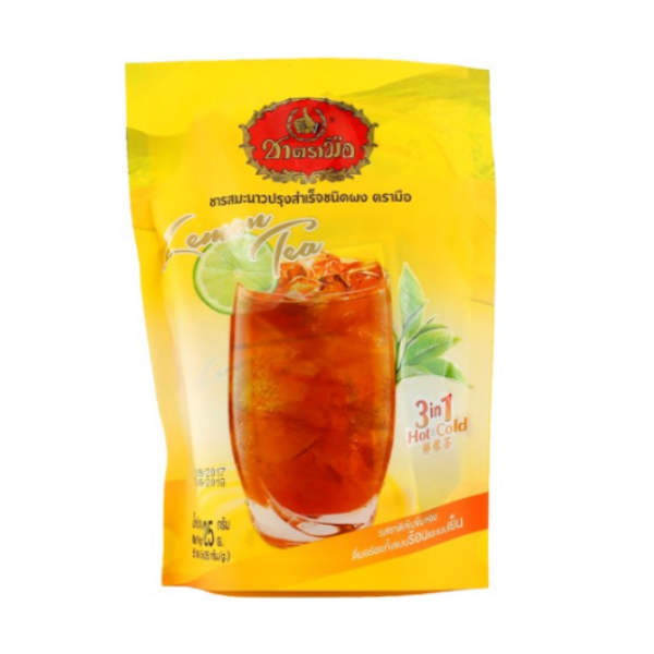 ชาตรามือ 3 in 1 ชามะนาวปรุงสำเร็จ เป็นเครื่องดื่ม ชามะนาว รสชาติเปรี้ยวหวาน ที่ผสมผสานระหว่างรสชาติเข้มข้นของชาและรสเปรี้ยวสดชื่นของมะนาว ช่วยให้คุณได้สัมผัสความสดชื่นและอร่อยในทุกช่วงเวลา สามารถชงได้ง่ายเพียงเติมน้ำร้อนหรือสามารถเย็นเพื่อดื่มในวันร้อนๆ ด้วยรสชาติที่ลงตัว จึงเหมาะสำหรับทุกคนในครอบครัว