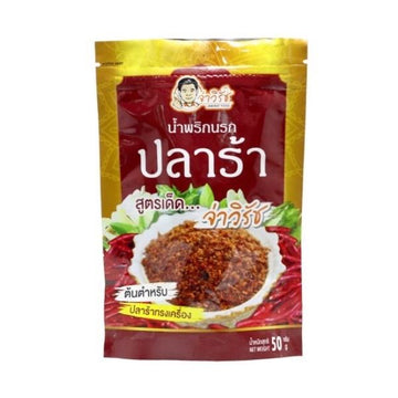 น้ำพริกนรกปลาร้าจากจ่าวิรัช ขนาด 50 กรัม ใช้ปลาร้าต้มสุกคุณภาพดี ทำให้ได้รสชาติเปรี้ยวเผ็ดลงตัว สามารถทานคู่กับข้าวสวยร้อนๆ หรือผักสด ได้รสชาติอีสานแท้ๆ เหมาะสำหรับการรับประทานเป็นน้ำพริกหรือทานคู่กับเมนูอาหารย่างต่างๆ