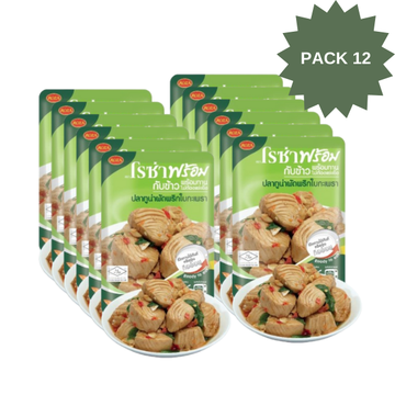 โรซ่าพร้อม อาหารพร้อมทาน เซ็ตคนรักปลา ปลาทูน่าผัดพริกใบกะเพรา 105g แพ็ค 12 1 เซ็ตมี 12 ซอง