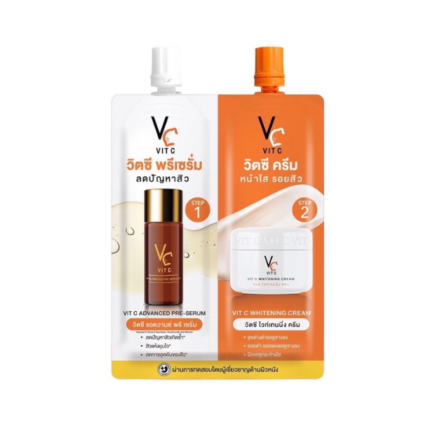 เน้นความคุ้มค่า 2 in 1: "บำรุงผิวครบจบในซองเดียว! วีซี วิตซี ครีมซอง 2 in 1 ทั้งพรีเซรั่มและครีม บำรุงล้ำลึก ผิวใสไบร์ท X2"