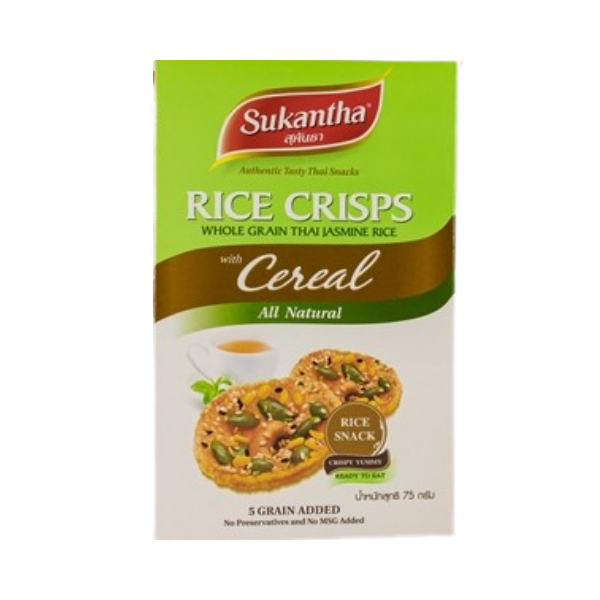 ข้าวตังธัญพืช สุคันธา บรรจุในกล่อง 75 กรัม ผสมผสานธัญพืชหลากชนิดอย่างลงตัว ไม่ว่าจะเป็นเมล็ดฟักทอง งาขาว และเมล็ดอื่นๆ ให้รสชาติกรอบอร่อยและมีคุณค่าทางอาหาร เหมาะสำหรับทานเล่นหรือเป็นของว่างเพื่อสุขภาพในทุกมื้อ อิ่มอร่อยพร้อมความหอมกรุ่นจากธัญพืช