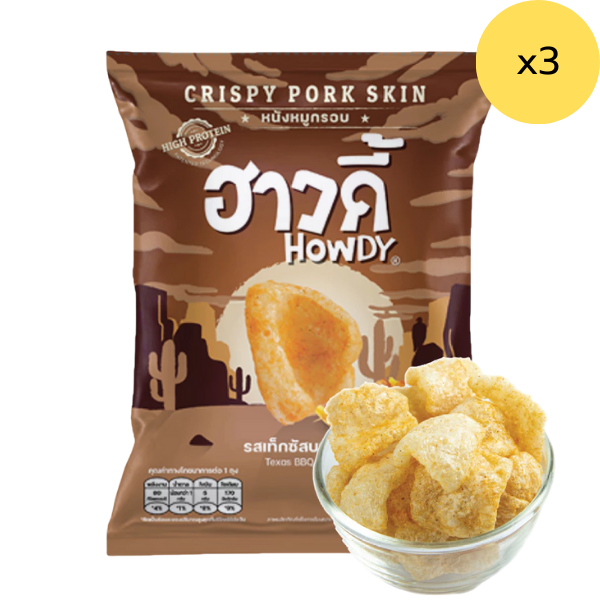 หนังหมูกรอบ รสเท็กซัสบาร์บีคิว 14g ( แพ็ค 3 )