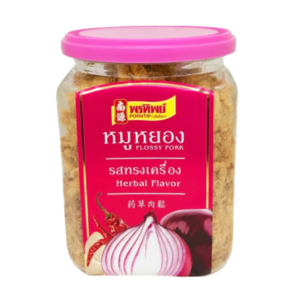 หมูหยองทรงเครื่องเนื้อนุ่มฟูทำจากเนื้อหมูคุณภาพดี ผสมผสานเครื่องเทศและสมุนไพรอย่างลงตัว รสชาติเข้มข้นกลมกล่อม เคี้ยวง่ายไม่เหนียว เหมาะสำหรับโรยข้าว ทานคู่โจ๊ก หรือเป็นของว่างเพิ่มความอร่อยครบเครื่องในทุกมื้อ