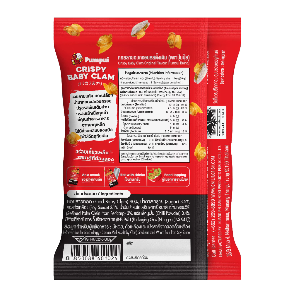 ข้อมูลผู้แพ้อาหาร : มีหอย ถั่วเหลือง แป้งสาลี