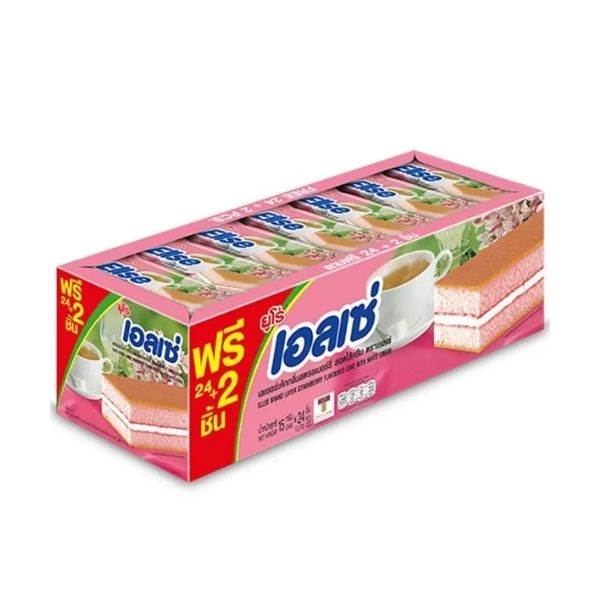เลเยอร์เค้กกลิ่นสตรอเบอร์รี่ สอดไส้ครีม 15g ( 24 ซอง )