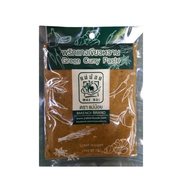 แม่น้อย พริกแกงเขียวหวาน ขนาด 80 กรัม พริกแกงเขียวหวานรสชาติเข้มข้น เหมาะสำหรับการปรุงเมนูแกงเขียวหวานต่างๆ ไม่ว่าจะเป็นแกงไก่หรือแกงเนื้อ ด้วยรสชาติหอมจากสมุนไพรและเครื่องเทศ เพิ่มความเผ็ดร้อนและกลมกล่อมให้กับทุกจาน