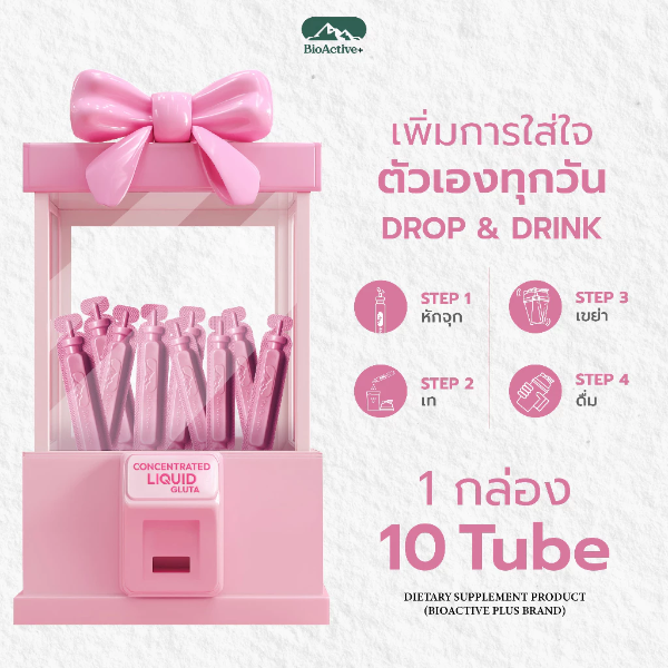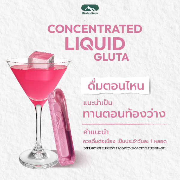 BioActive Concentrated Liquid Gluta รสสตรอว์เบอร์รีลิ้นจี่ สูตรเข้มข้นดื่มง่าย ให้รสชาติหวานหอมสดชื่น ช่วยเสริมภาพลักษณ์ผิวให้ดูเปล่งประกายอย่างเป็นธรรมชาติ เหมาะสำหรับผู้ที่ต้องการดูแลตัวเองทุกวันด้วยเครื่องดื่มบำรุงที่ดื่มแล้วรู้สึกสดชื่นทันที พร้อมช่วยเพิ่มความมั่นใจในทุกโอกาส